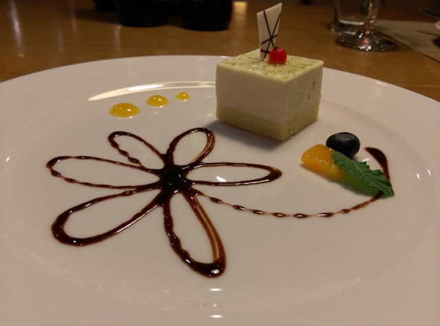 這擺盤很漂亮的慕斯蛋糕 檸檬口味還真的不賴