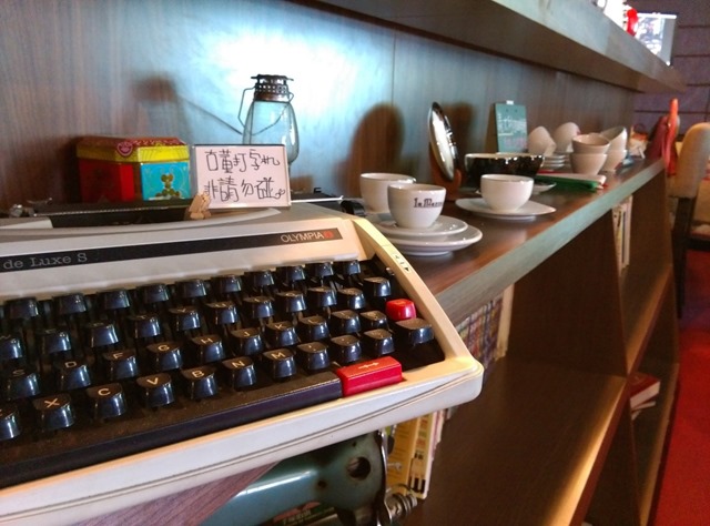 櫃檯下方 放了老的打字機 這風格有趣