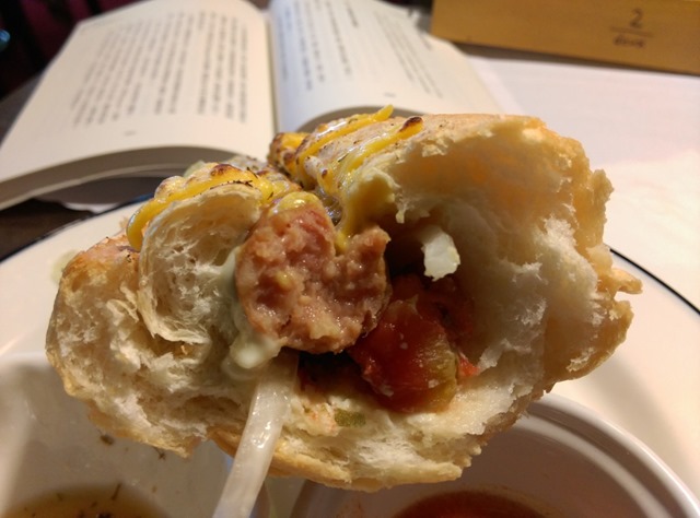 這香腸堡 我最喜歡那麵包啦 是的!我是不折不扣的麵包控啊