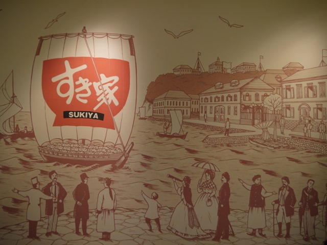這牆壁上的壁畫還挺有趣的 不知道すき家是怎麼跟這有點早期美國風格的畫有關的?