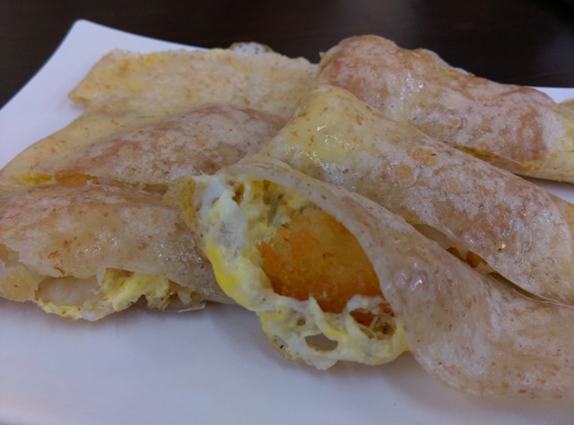 裡面的薯餅是炸好的 包在蛋餅皮裡面吃起來有軟有酥