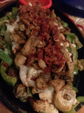 這鐵盤上面放了炒的東西 原來美式餐廳有炒的東西喔