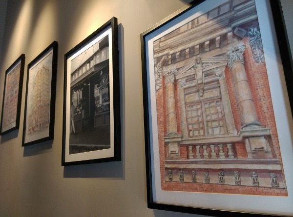 二樓的牆邊 掛了好多的圖畫跟照片