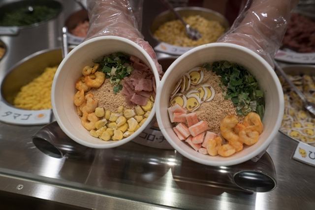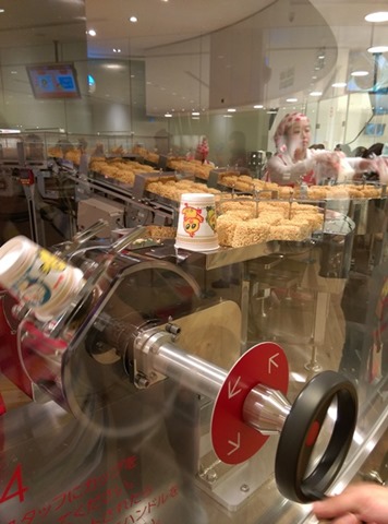 當然是要把麵放進去杯子裡面啊 這裡整個自動化了 看到一堆的泡麵