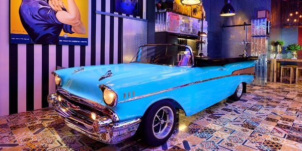 只能說真的有很創意啊 直接把復古的車子擺在大廳