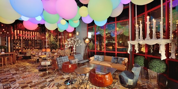 天花板上滿滿的各色汽球 一整個就是要開Party的氣氛啊