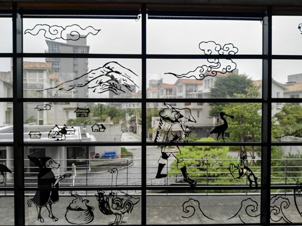 在玻璃上面 簡單的貼紙    讓空間更活潑