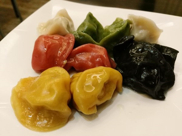 這五行水餃上桌時候還真的有特別 五種顏色代表五行