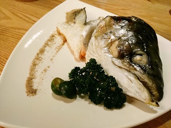 說實在的我也不知道哪根筋不對 在鹽烤鯖魚之後又點了鹽烤鮭魚頭  從頭到尾都是吃魚