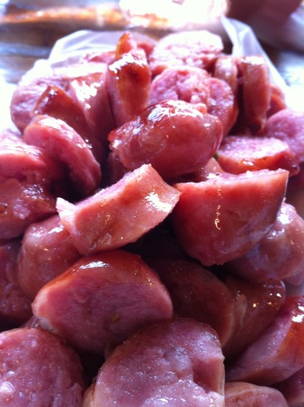 看看這一盤用切塊上桌的香腸 那粉嫩的顏色真的好好吃的樣子