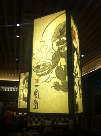 一風堂整體的裝潢相當的現代 不過用了大料日本繪畫風格來裝飾