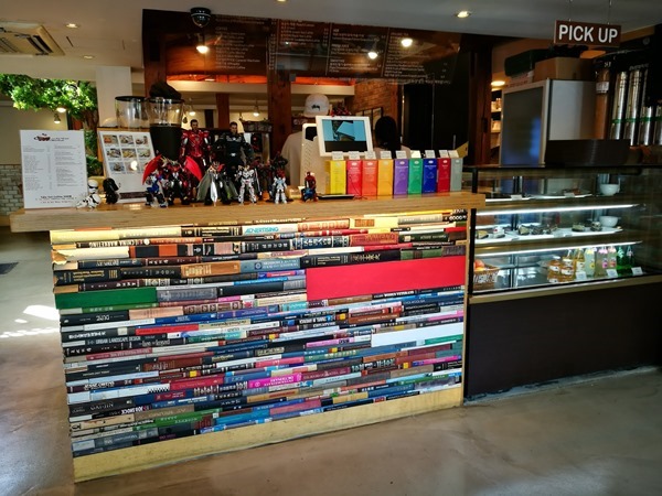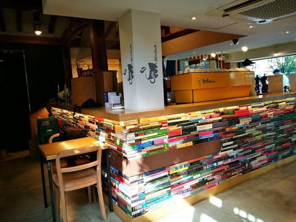 像是一堆書堆起來的櫃檯 有點書卷氣也成了這空間很特別的地方