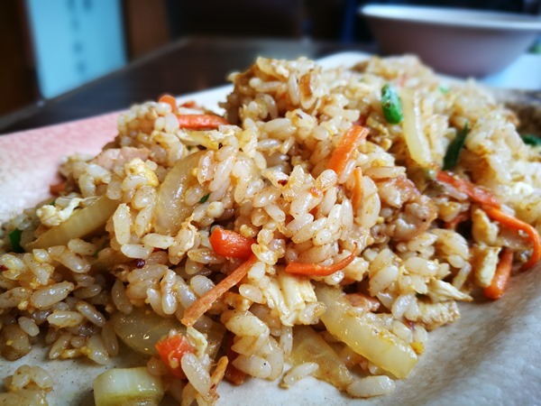 這炒飯看起來油亮 而且粒粒分明 蛋跟蝦仁都炒地入味