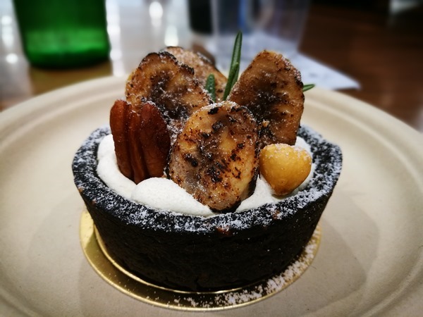 香蕉微微烤過搭配旁邊的堅果     有多層次的口感從細緻軟綿到酥脆     很好吃