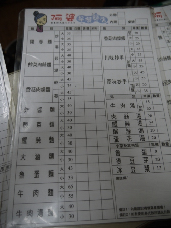 早餐麵店 門口的看板寫了滿滿裏頭賣的食物