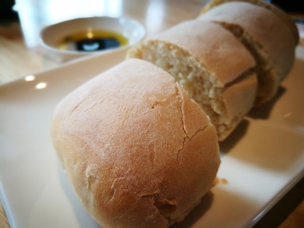 外皮有點硬 裡面很軟 重點是剛熱過溫溫的簡單沾點橄欖油跟油醋就好好吃