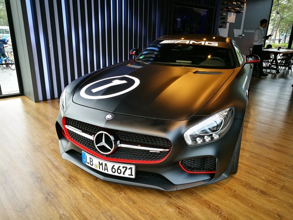 這一台是隸屬AMG Driving Academy黑色消光彩繪的AMG GTS Race Taxi展示車