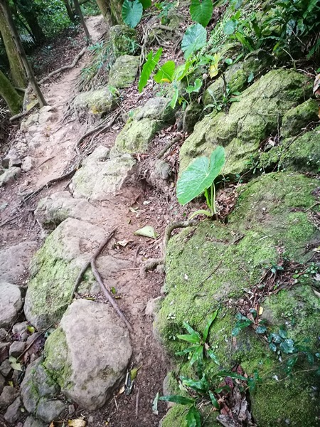 但是大部分都是石頭還有盤根錯節樹根交錯 長年沒有曬太陽所以有長了青苔