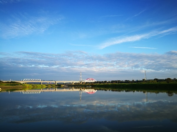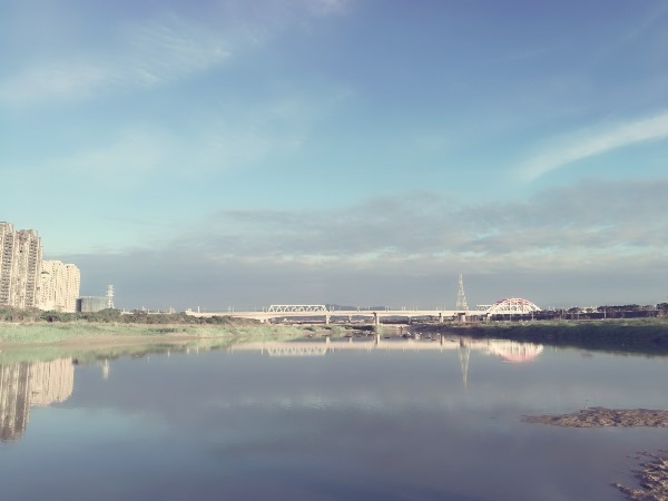 不遠處就是興隆大橋了 這橋身白色粉紅色的顏色 在藍天下特別顯眼