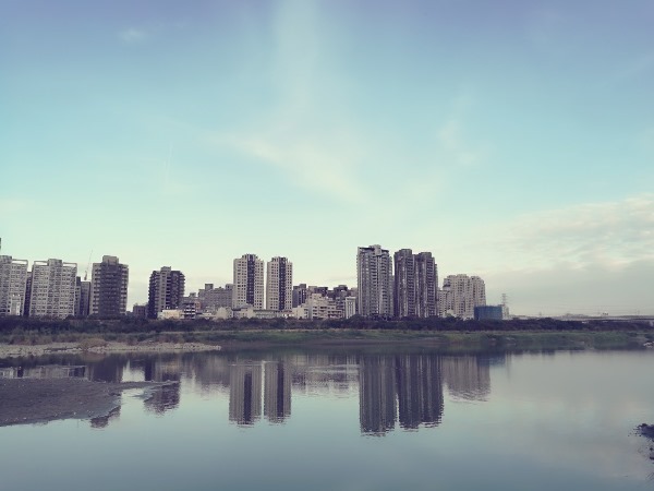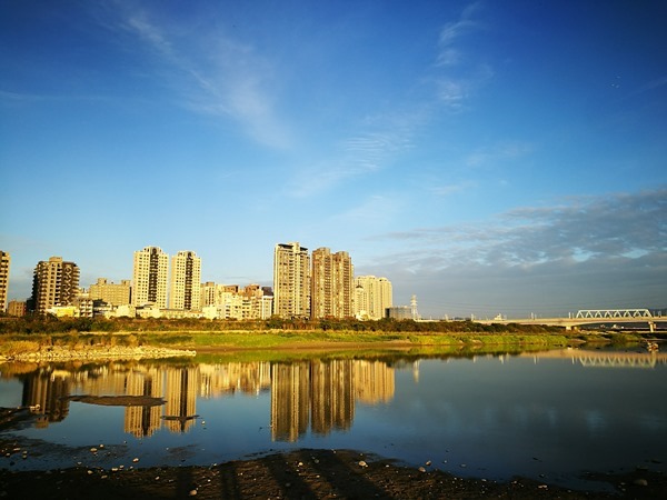 在竹北這一頭 沿著頭前溪有好多的高樓