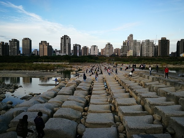 豆腐岩就位於頭前溪正中央 而且一路新竹這邊延伸到竹北那邊