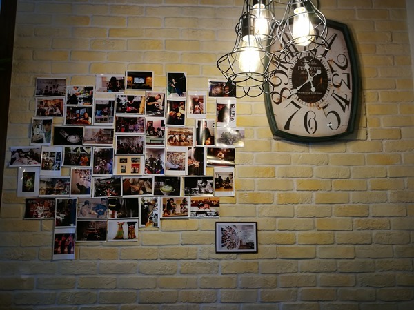 這一片牆以文化牆為底 搭配設計時鐘相片組合 還有設計燈款