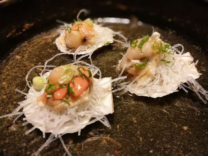 這蝦子在處理完後 濃濃的大蒜醬油香氣 後面的扇貝也是一樣啊