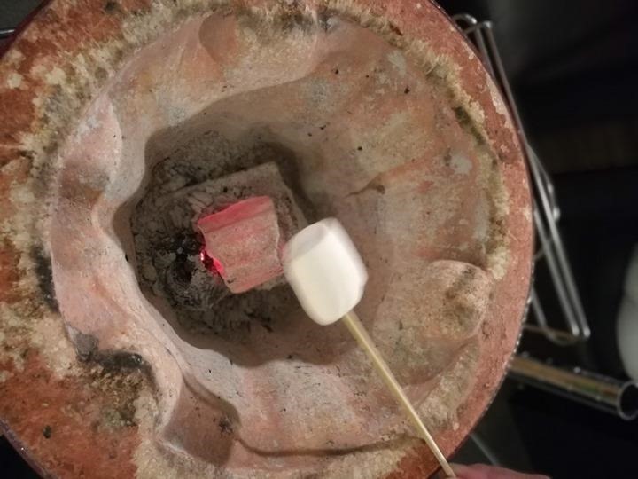 這棉花糖因為有專人照顧 所以烤得整個暖暖的 外面有點化開了