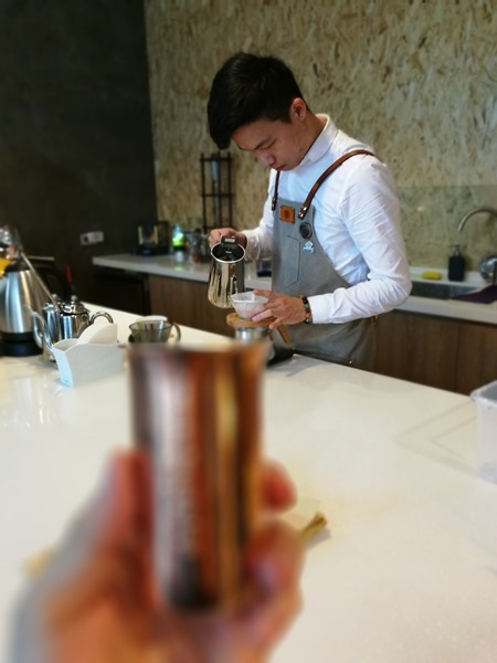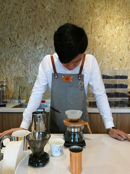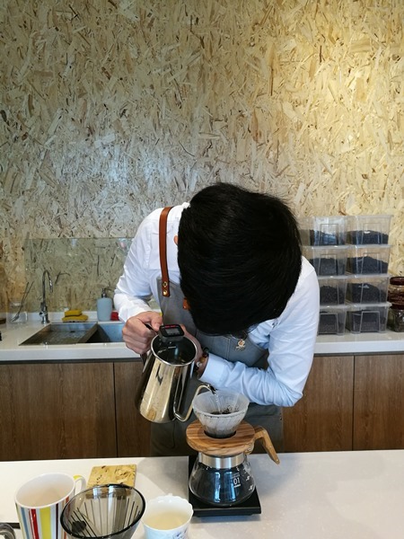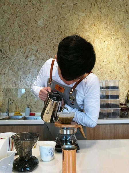 然後就開始沖咖啡囉 很專注的每一個咖啡師都是一樣