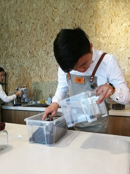 有客人的時候要招呼客人忙麼沖咖啡 沒有客人的時候就認真地檢豆子