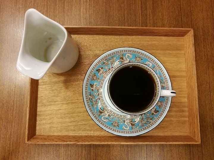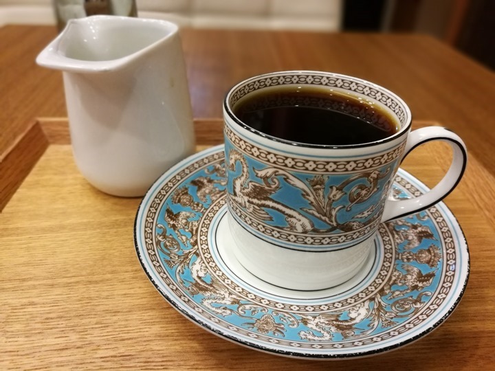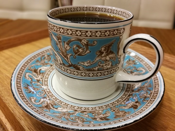 咖啡端上桌的時候本來還是在這白色的杯子裡面的 然後在我面前把咖啡倒到漂亮精緻的咖啡杯裡面