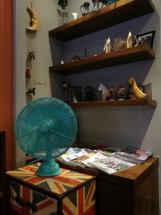 進門左手邊 大橘色的牆面一張海報一整個傳統咖啡廳會設計的樣子