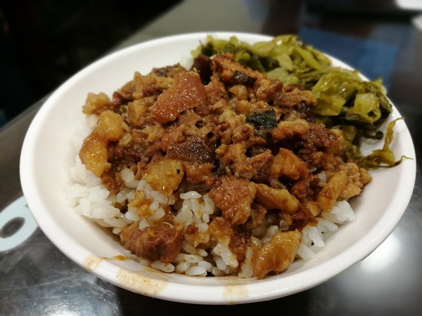 這魯肉飯除了魯肉之外還有一些酸菜 酸菜可以增加口感
