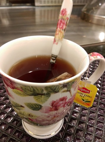 來一杯紅茶吧 這花枝招展的杯子裡裝著立頓紅茶包    很有趣的組合