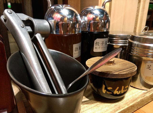 加上大蒜跟壓大蒜的夾子 桌子的空間變得很小 還好只點了拉麵