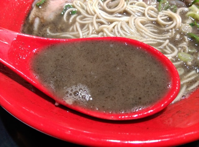 這湯頭很濃郁 跟基本豚骨拉麵一樣濃郁到讓我覺得有勾芡的感覺 當然喝起來很過癮
