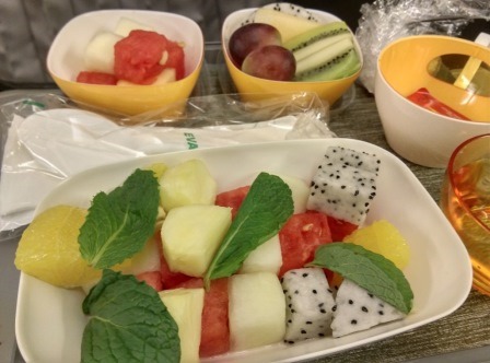 長榮的水果餐還真的是很有趣 整個餐盤裡面的碟子一個也沒有少