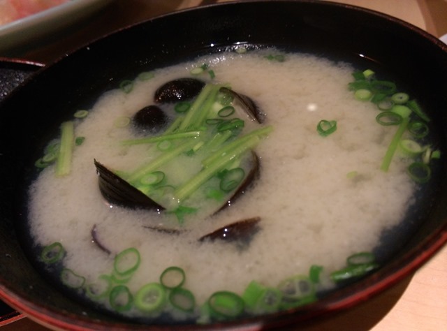 很多少小的蛤蠣 加上點白味增     味道沒有紅味增那麼鹹 真的很好喝