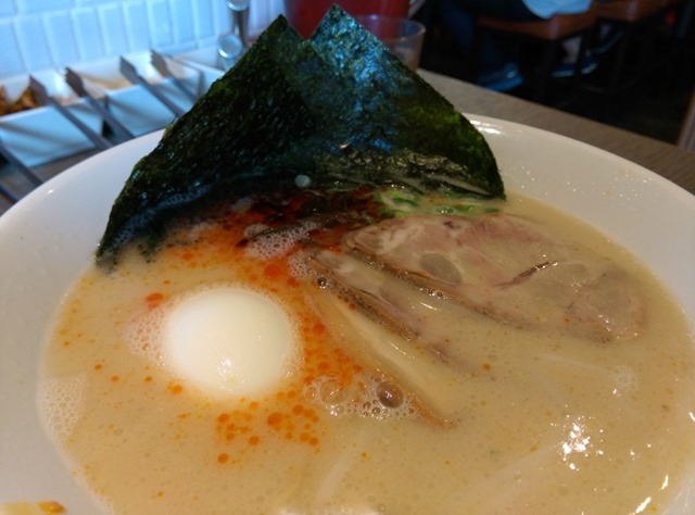 這湯頭有濃郁的豚骨香氣 半熟蛋感覺挺香但是好像跟日本吃得有些許的不同