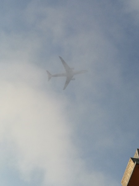 越來越近耶…運氣相當的好 然後它就慢慢的轉彎往松山機場方向去降落