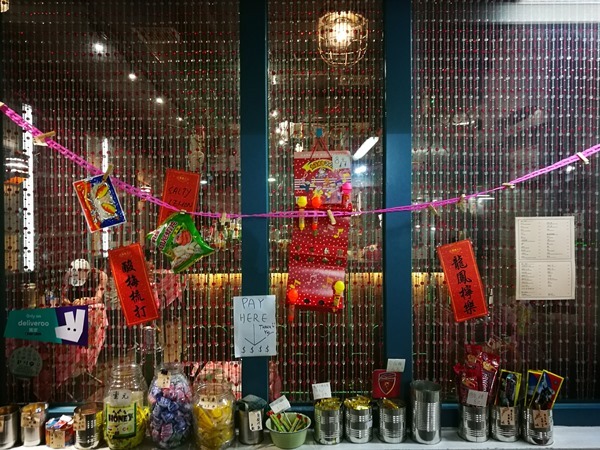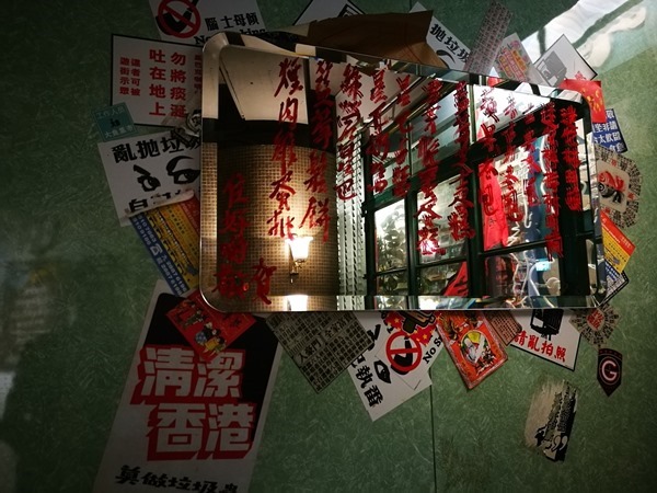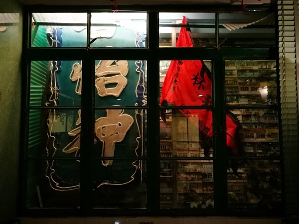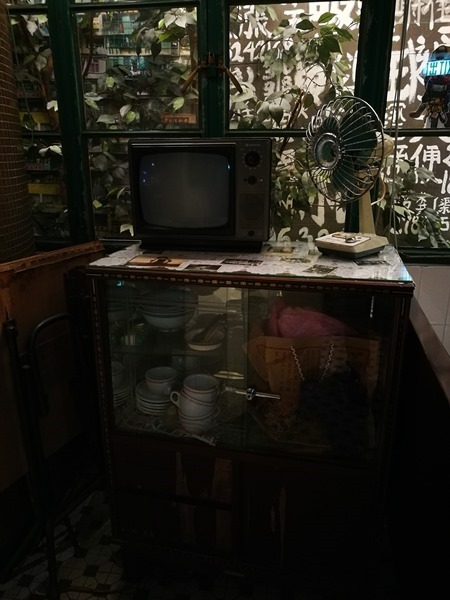 玻璃窗裡面 放置了一些很有香港味道的擺設