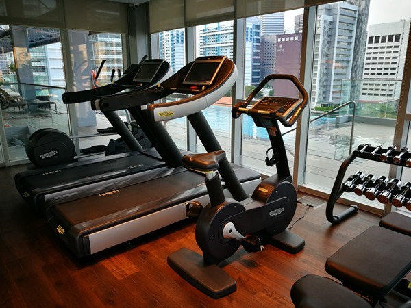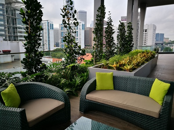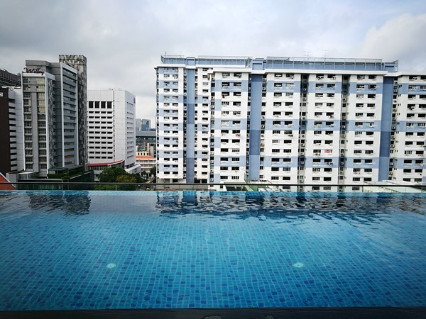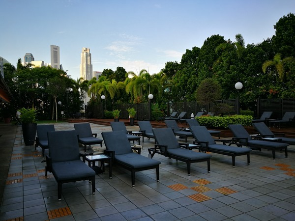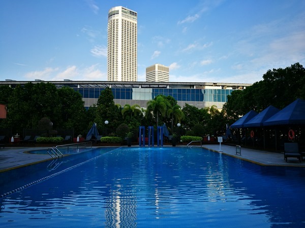 游泳池在一樓的好處就是享有這四周綠樹環繞的景致 新加坡的樹都好高大