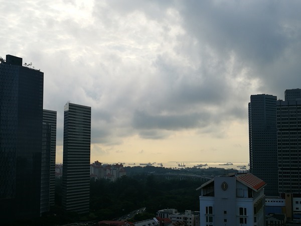 雖然這一天沒有排到濱海灣的景色 但是外面一望無際沒有鄰居 所以沒有簾子可以拉下來