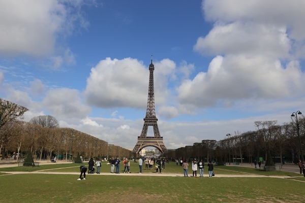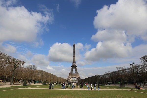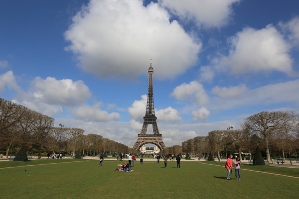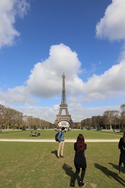 Paris-巴黎艾菲爾鐵塔La Tour Eiffel 藍天白雲綠地完美襯托優雅鐵塔