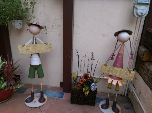 曼谷市場這一個店面有開放式的前庭…然後放了好多大片葉子的盆栽來裝飾…跟木頭的裝潢…帶著點舊味道的建築…超搭