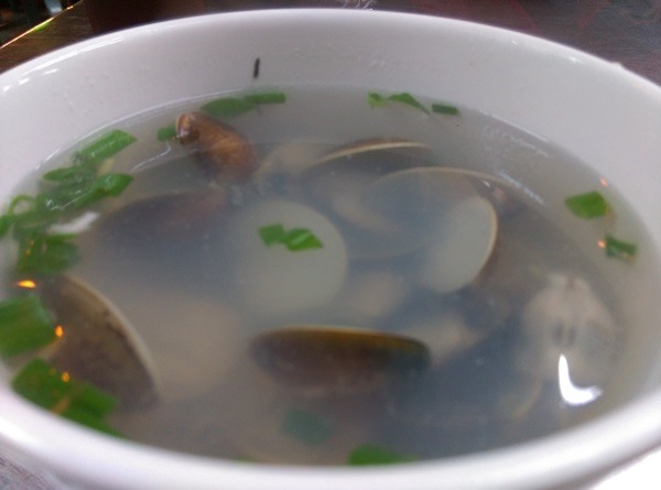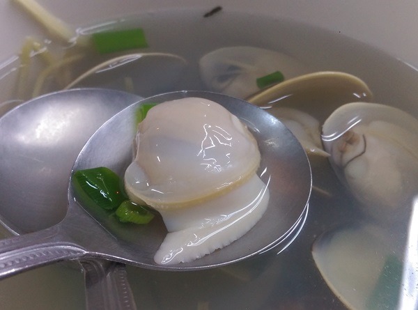 這湯就是很基本的蛤仔湯 蛤仔加上一些的蔥跟薑絲