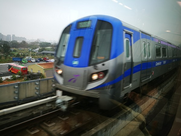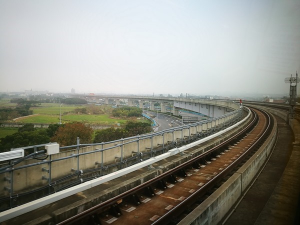 拍了這張照片 機場捷運緩緩地駛出車站 優雅的緩慢的…