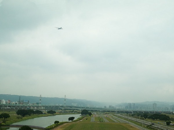 越來越近耶…運氣相當的好 然後它就慢慢的轉彎往松山機場方向去降落