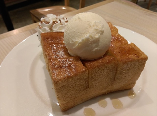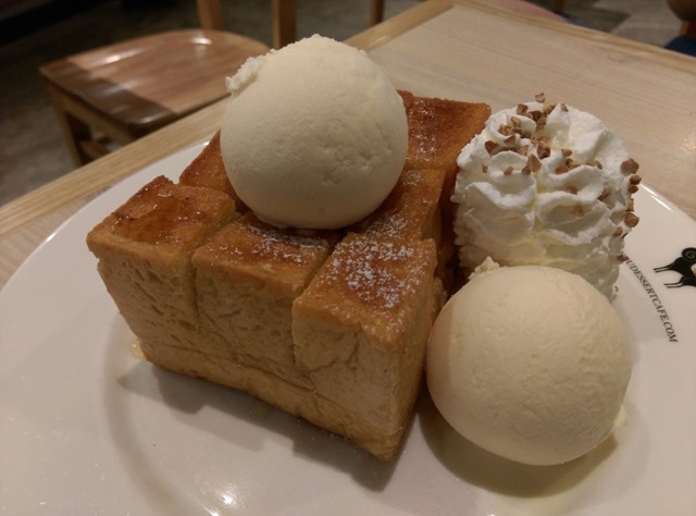 蜜糖吐司 旁邊一坨的奶油上面一大球的冰淇淋    這真的是太誘人了