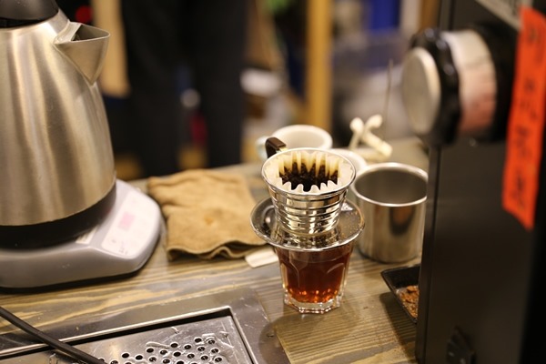 這一個角落, 有免費的咖啡跟茶可以飲用…也擺了一些展演的資訊